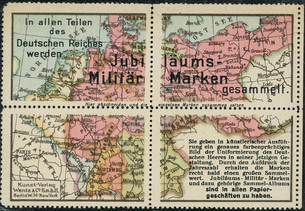Vintage German Jubilaums Militar Marken - Complete Set of 4 Military Map Stamps