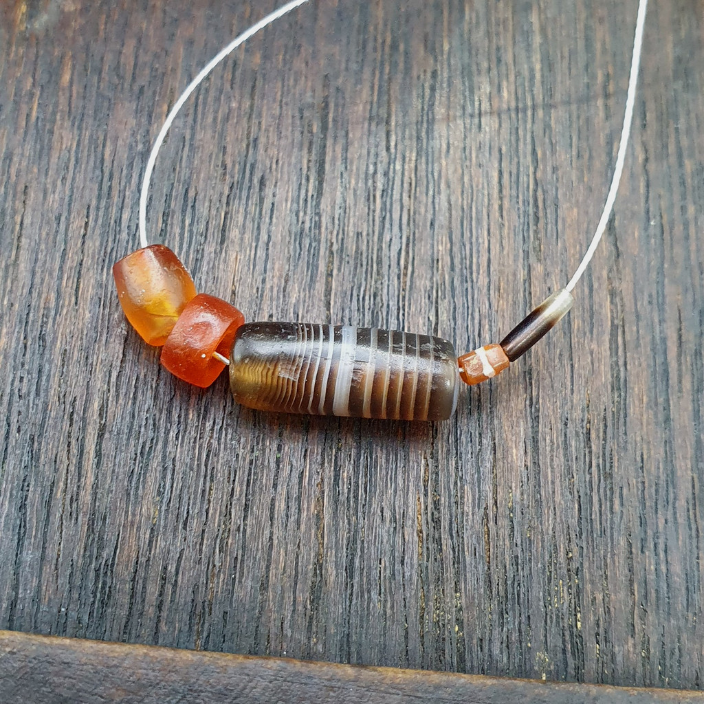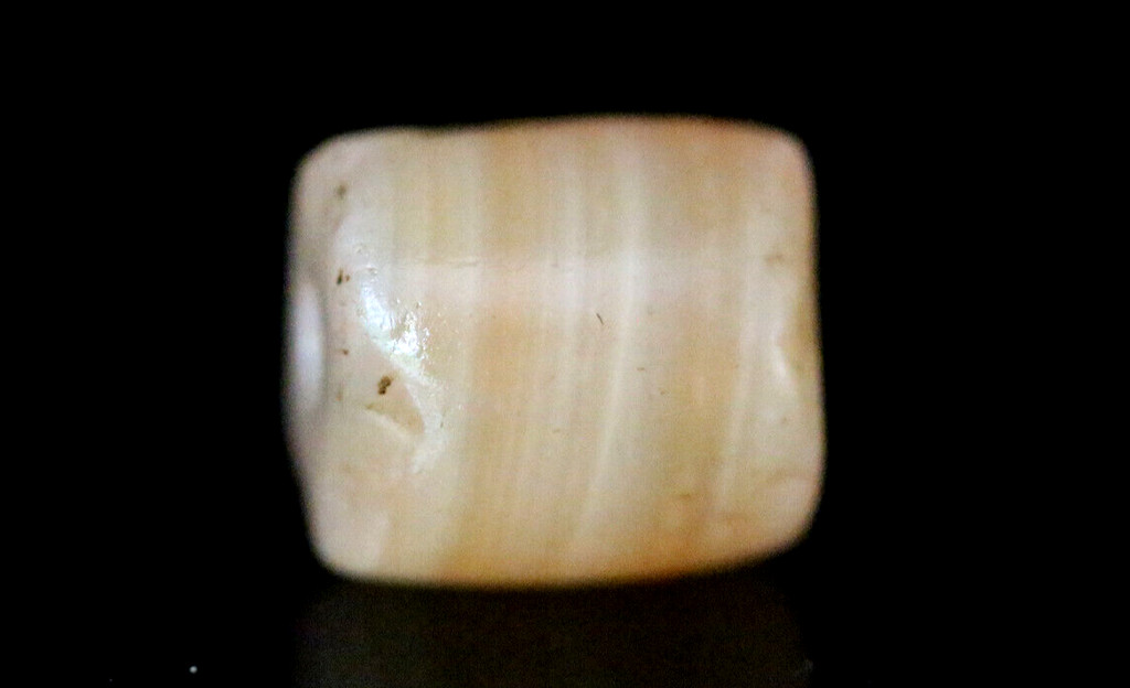 Antique Old Central Asian Banded Agate Stone Bead With White Patina