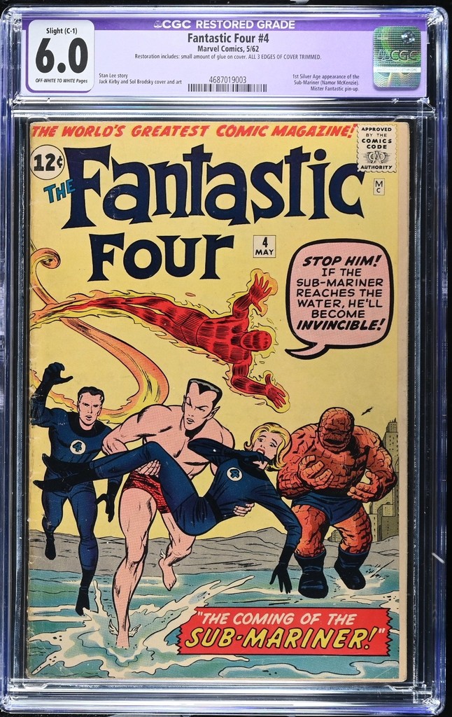 Fantastic Four 4 CGC 6.0 Restored Marvel 1962 1st Silver Age Sub Mariner Namor