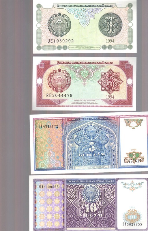 Banknote: Uzbekistan Set #3 P-73,74,75,76,77,78,79,80,81,82 Unc.10 Banknote Set Asia