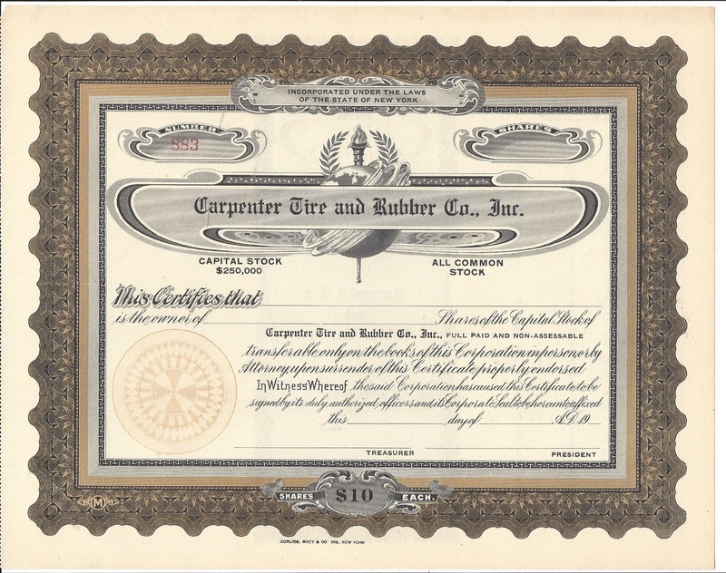 Stock/Bond: Carpenter Tire And Rubber Co. Inc.....Unissued Stock Certificate