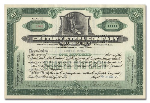 Century Steel Company Of America, Inc. Stock Certificate (Poughkeepsie, Ny)