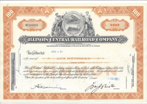Stock/Bond: Illinois Central Railroad Company......1963 Stock Certificate