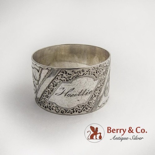 #FreeShipping antique Aesthetic Coin Silver Napkin Ring Floral Acid Etched Decorations 1890