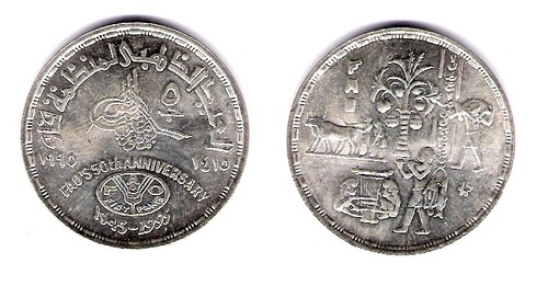 Coin: Egypt 1995 Silver Five Pounds ""Fao Anniversary"" "" ""Unc"" ""Scarce"" Free Usa Ship
