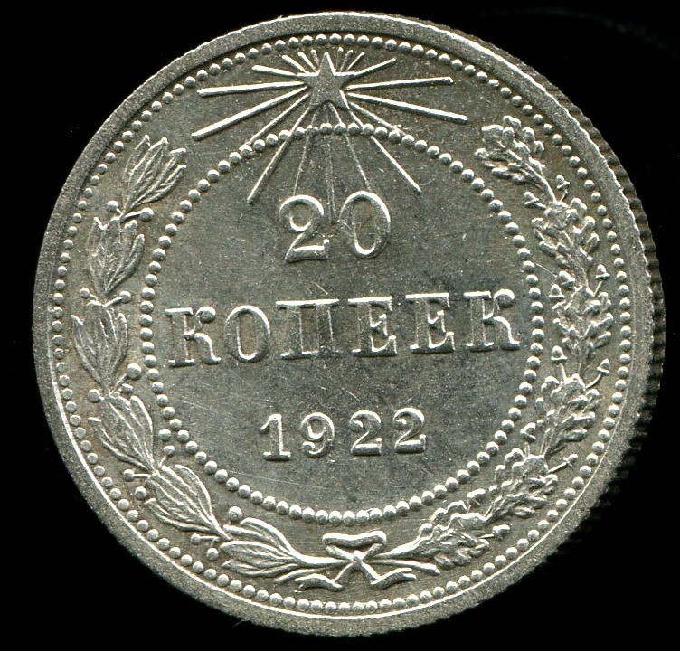 Spc 1922 20 Kopeks Russia Soviet Republic Rsfsr Silver Coin Hight Grade Ru1624