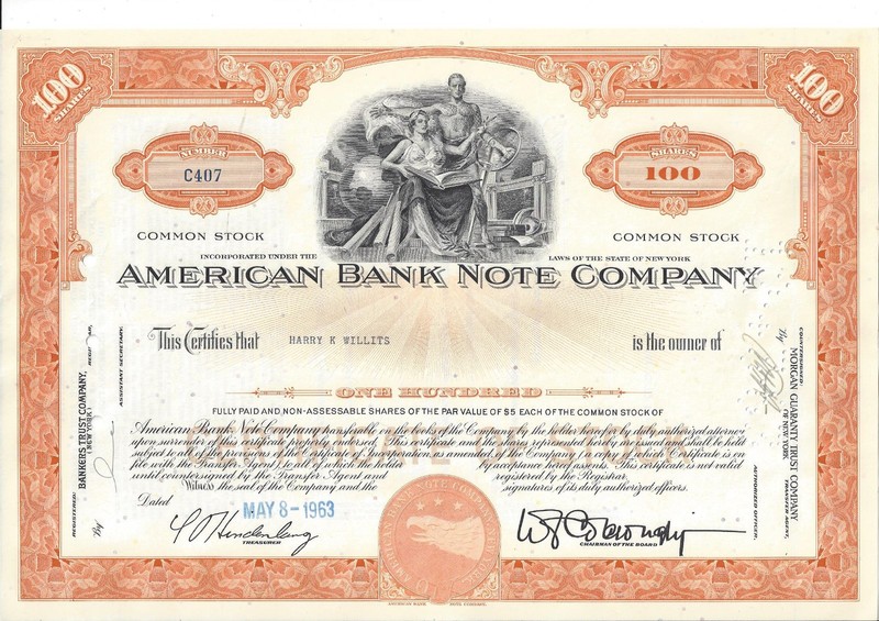 Stock/Bond: American Bank Note Company.....1963 Stock Certificate