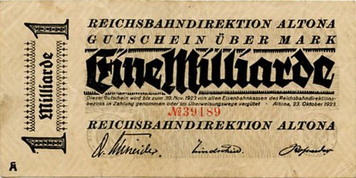 Banknote: Germany 1 Billion Mark 1923 Altona №39189 Reichsbahn
