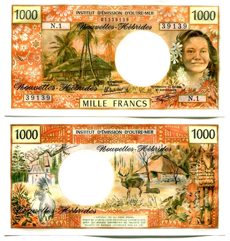 Banknote: New Hebrides 1000 Francs Nd(1975) P-20B Unc