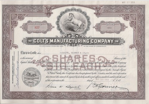 Stock/Bond: Colt Manufacturing Company.......1953 Stock Certificate