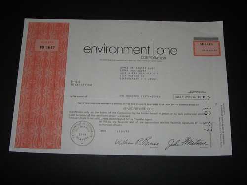 Stock/Bond: Environnment One Corporation Stock Certificate ( Hard To Come By )
