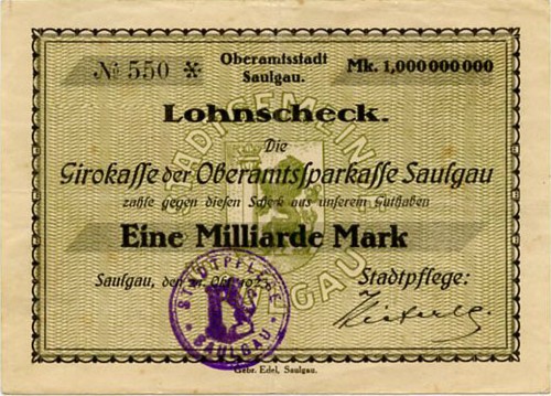 Banknote: Germany 1 Billion Mark 1923 Saulgau No550*