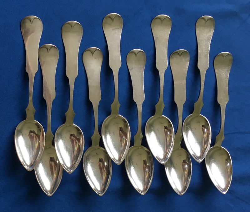 10 Clemens Hellebush Coin Silver Teaspoons 1866-1893 Cincinnati Ohio Silversmith