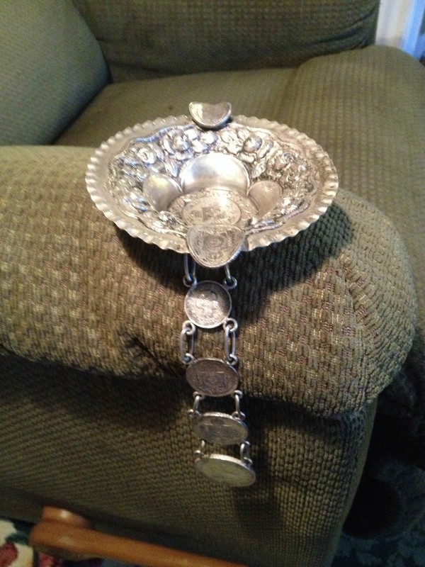 Antique Brazil Coin Club Armchair Ashtray Repousse .900+ Silver 500-2000 Reis