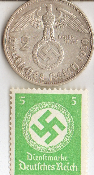 Antique: Coin *Ww2 - *German Silver Eagle Coin/Stamp + Us Ww2 Nickel ++..
