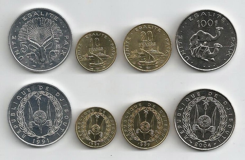 Coin: Djibouti 4 Coin Type Set Eland Head Boats Camels Uncirculated