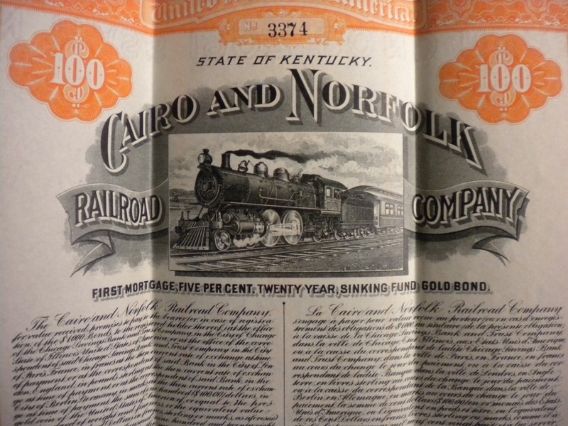 Stock/Bond: Cairo And Norfolk Railroad Company 1908 Free Shipping