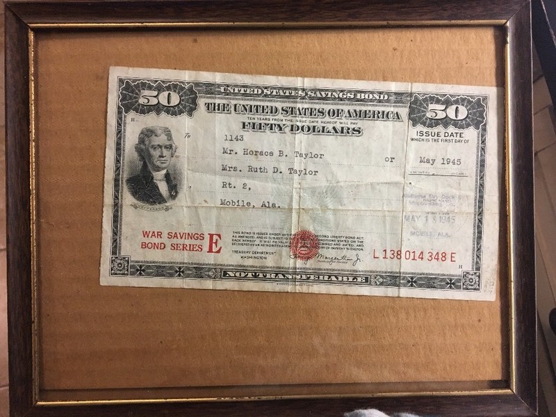 Stock/Bond: Vintage Framed Fifty Dollar E Series War Savings Bond From 1945 Free S/H