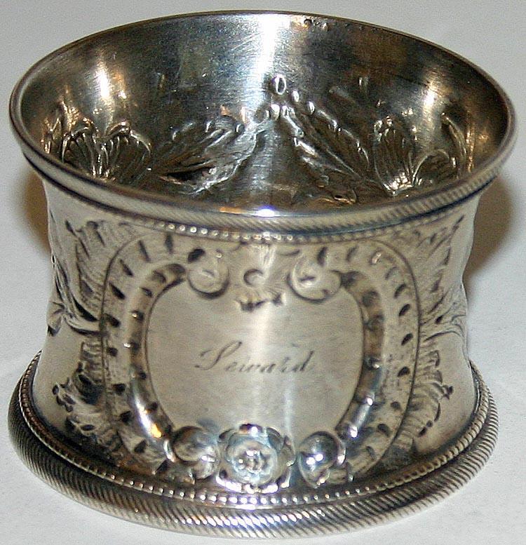 C.1870 Antique American Coin Silver Napkin Ring - ""Seward""