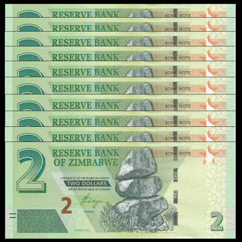 Banknote: Lot 10 Pcs, Zimbabwe 2 Dollars, 2016, P-New, Unc