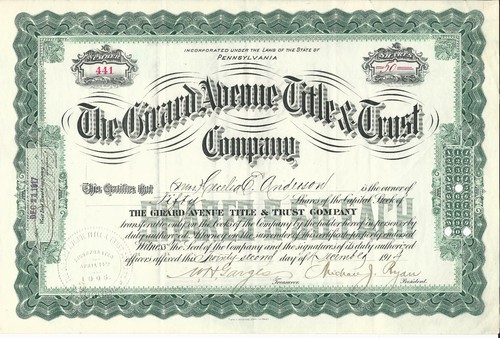 1917 Pennsylvania The Girard Avenue Title & Trust Companystock Certificate
