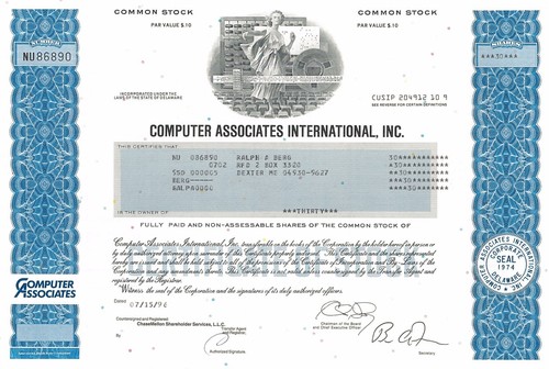 Ca Technologies Computer Associates International Technology Stock Certificate