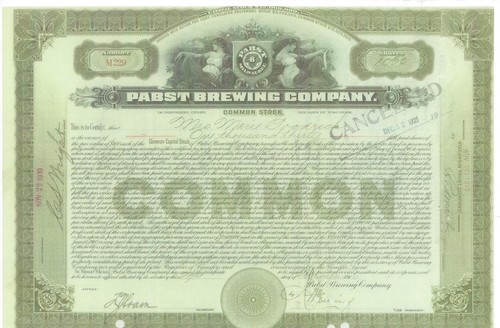 Stock/Bond: Pabst Brewing Company.......1910 Stock Certificate