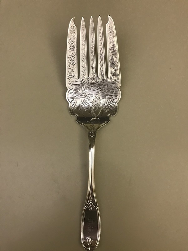 Antique: Coin Tuscan Pattern Coin Silver Serving Fork
