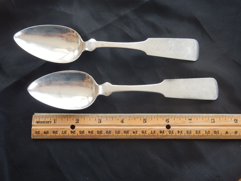 Two 2 Antique Coin Silver Serving Spoon Spoons Engraved Unknown Stamp