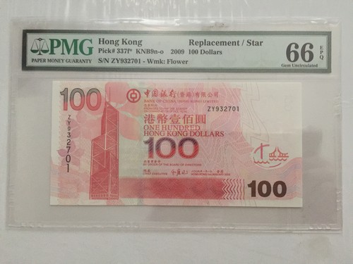 P-337F 2009 100 Dollars Hong Kong Bank Of China Pmg 66 Epq $100 Replacement Star