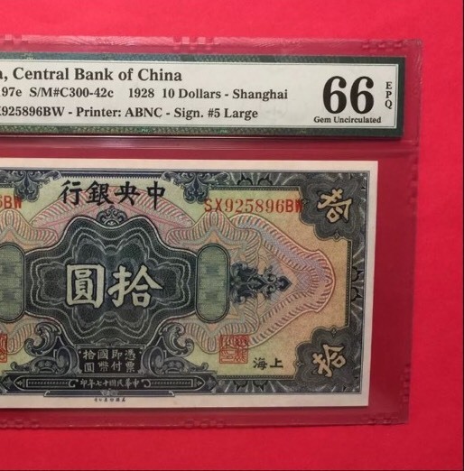 Banknote: Shanghai, China/Graded 1928 $10 Banknote P#197E ,66 Epq By Pmg.