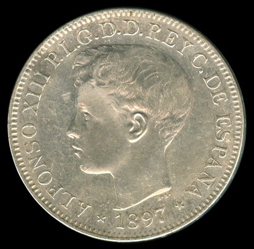 Coin: 1897 Alfonso Xiii Un Peso Spain / Spanish Philippines Silver Coin Km#154 - A6