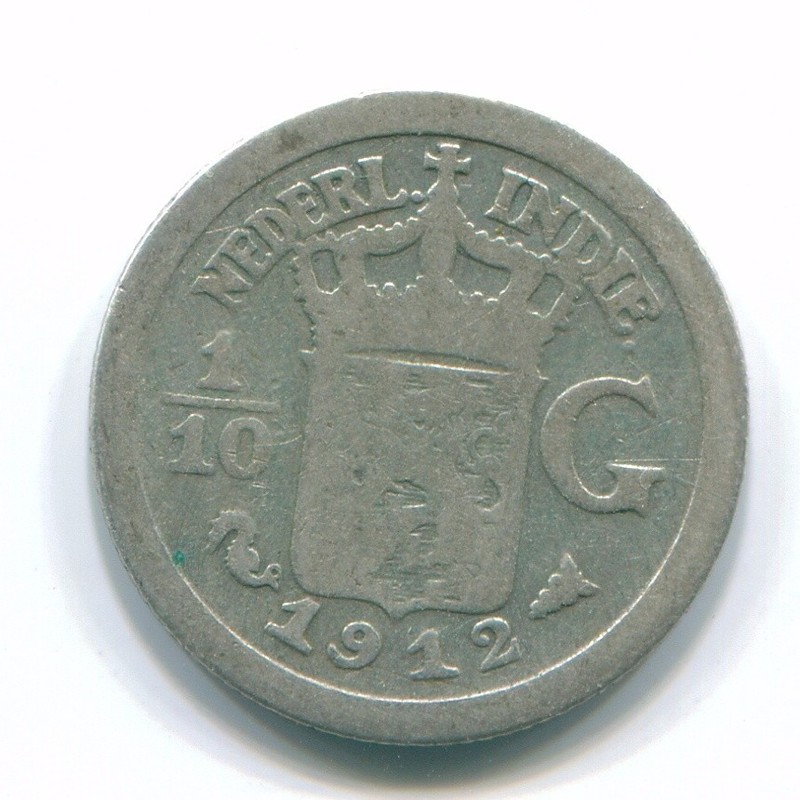 Coin: 1912 Netherlands East Indies 1/10 Gulden Silver Colonial Coin Nl13258#3