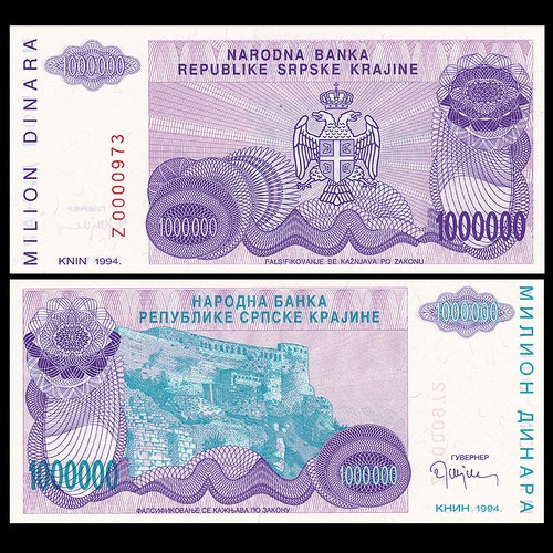Banknote: Croatia 1,000,000 (1000000) Dinars, 1994, P-R33, Z Replacement, Unc