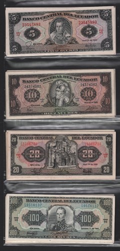 Banknote: Ecuador 1983-1997 Bill Banknote Of 5 10 20 100 Sucres 4 Lots Of 20 Each One