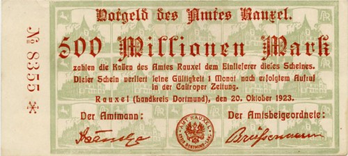 Banknote: Germany 500 Billions Mark 1923 Rauxel №8355*