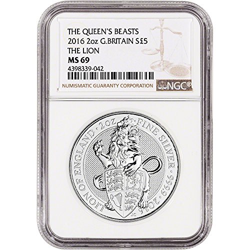 Coin: 2016 Uk Great Britain Silver Queen'S Beast Lion 5 Pound Ms69 Ngc