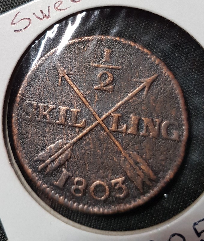 Coin: Sweden Gustaf Iv Adolf Copper 1803 1/2 Skilling Km#565