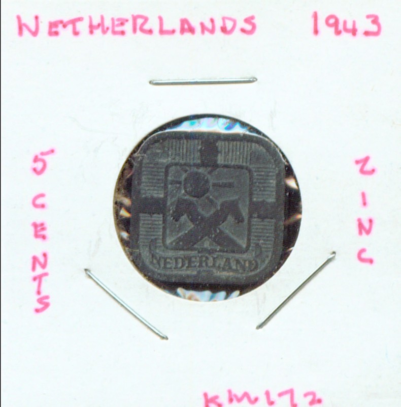 Coin: World Coins Netherlands 1943 5 Cent Ch Vf (2G697) Tough Date In Zinc Z