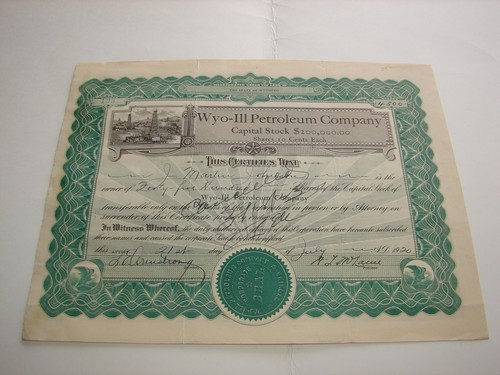 Stock/Bond: 1920 Wyo-1Ii Petroleum Company Stock Certificate Wyoming Vintage Free Shipping