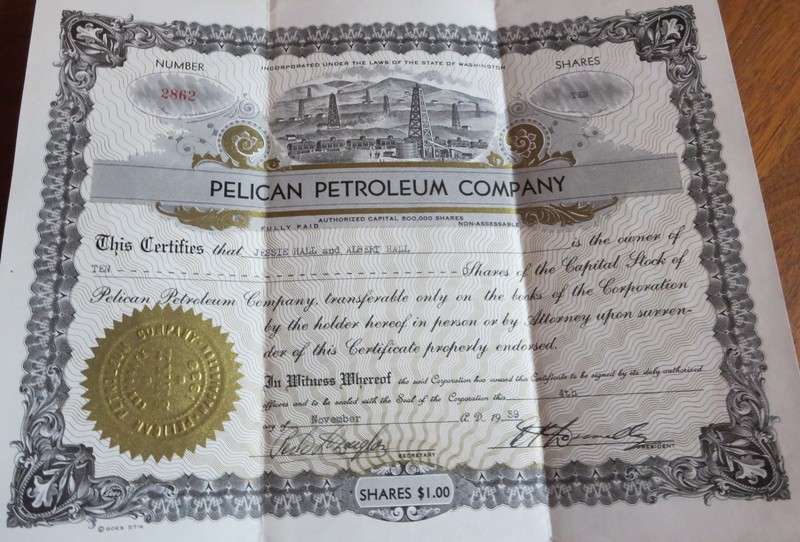 Stock/Bond: Pelican Petroleum Company - Wasington Certificate 1939