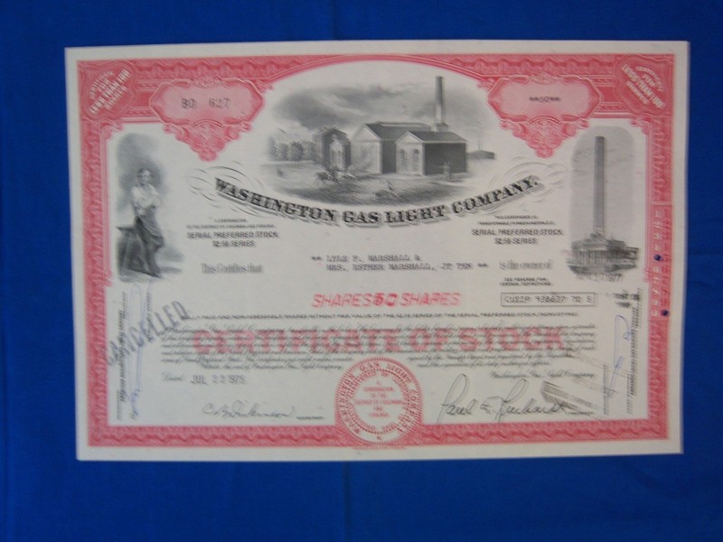 Stock/Bond: Stock Cert.: Washington Gas Light Co., 1975 (S7107)