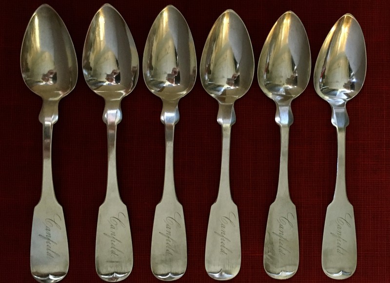 6 Fiddle Coin Silver Spoons Philo Dubois Buffalo Ny Engraved Canfield C.1840
