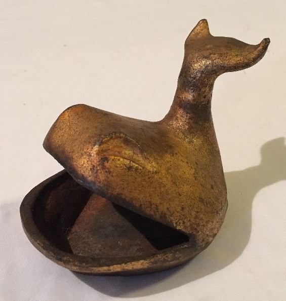 Antique Cast Iron Heavy Gold Whale Ashtray Coin Dish Vintage Figurine