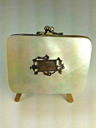 Antique French Mother Of Pearl Silk Coin Purse Necessaire 1