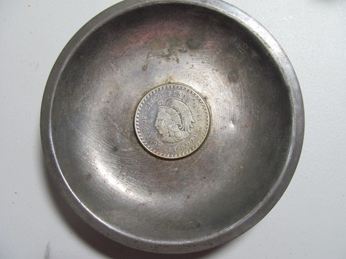 Antique: Coin Vtg Old Mexican Sterling Silver Bowl With 1948 Cinco Pesos Cuautemoc Coin Dish