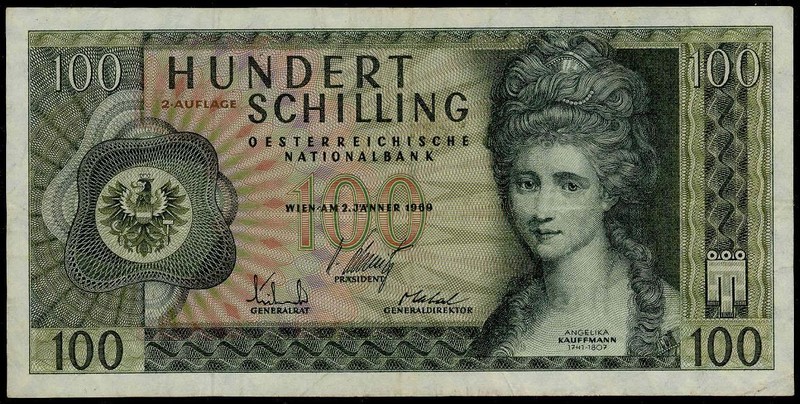 Banknote: Austria 100 Schilling 1969 Angelika Kauffmann Vf Scarce Banknote See Photos!