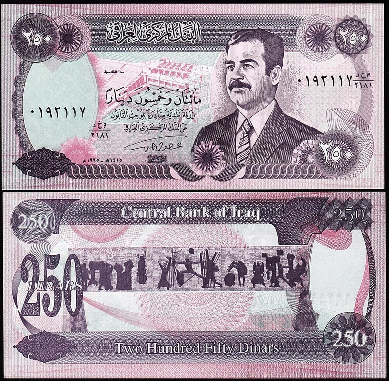 Iraq 250 Dinar 1995 Bundle Unc Pack Of 100 Pcs P.85 With Saddam Hussein
