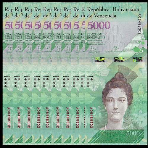Banknote: Lot 10 Pcs, Venezuela 5000 5,000 Bolivares, 2016/2017, P-New, New Issue, Unc
