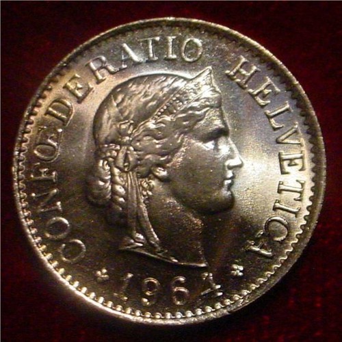 Coin: Beautiful Hi Grade Bu 1964 10 Rappen Switzerland**Lusterous Beautiful Coin